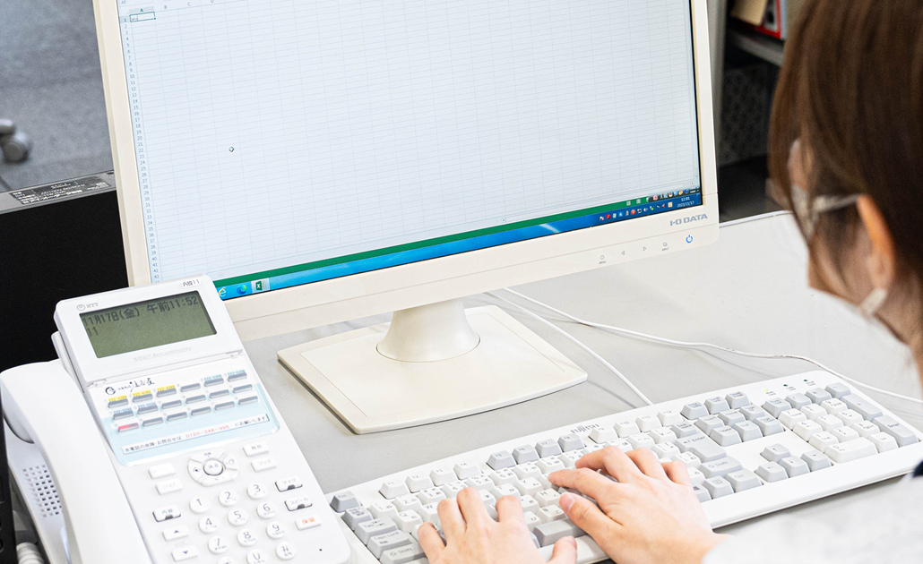 多方面への円滑なコミュニケーションを担ってもらいつつ、複雑な事務作業・数値管理は専用システムへの入力のみで済むよう社内デジタル化を進めています。業務効率化のアイデアを提案し、起用された先輩社員もいます!